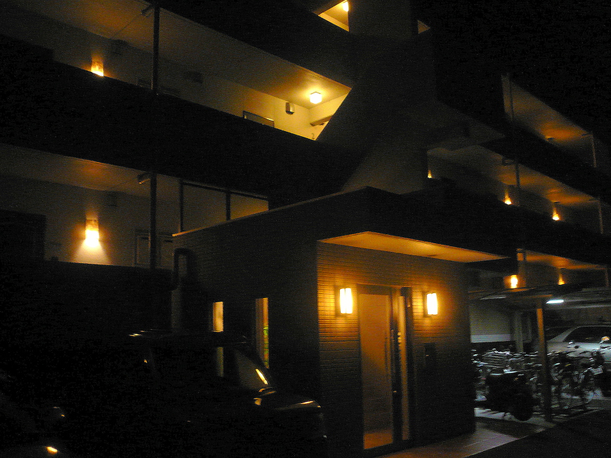 環境にも配慮 廊下にはLEDを使用し、普通の蛍光灯に比べると小虫があまり寄ってきません